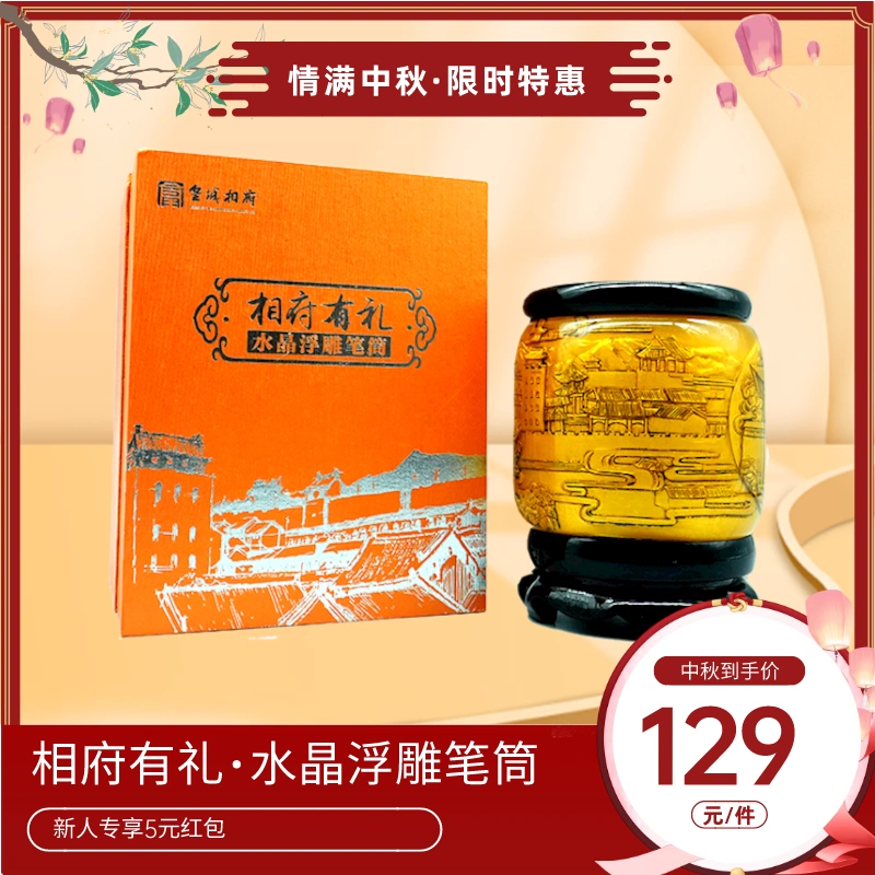 水晶浮雕旋转笔筒
